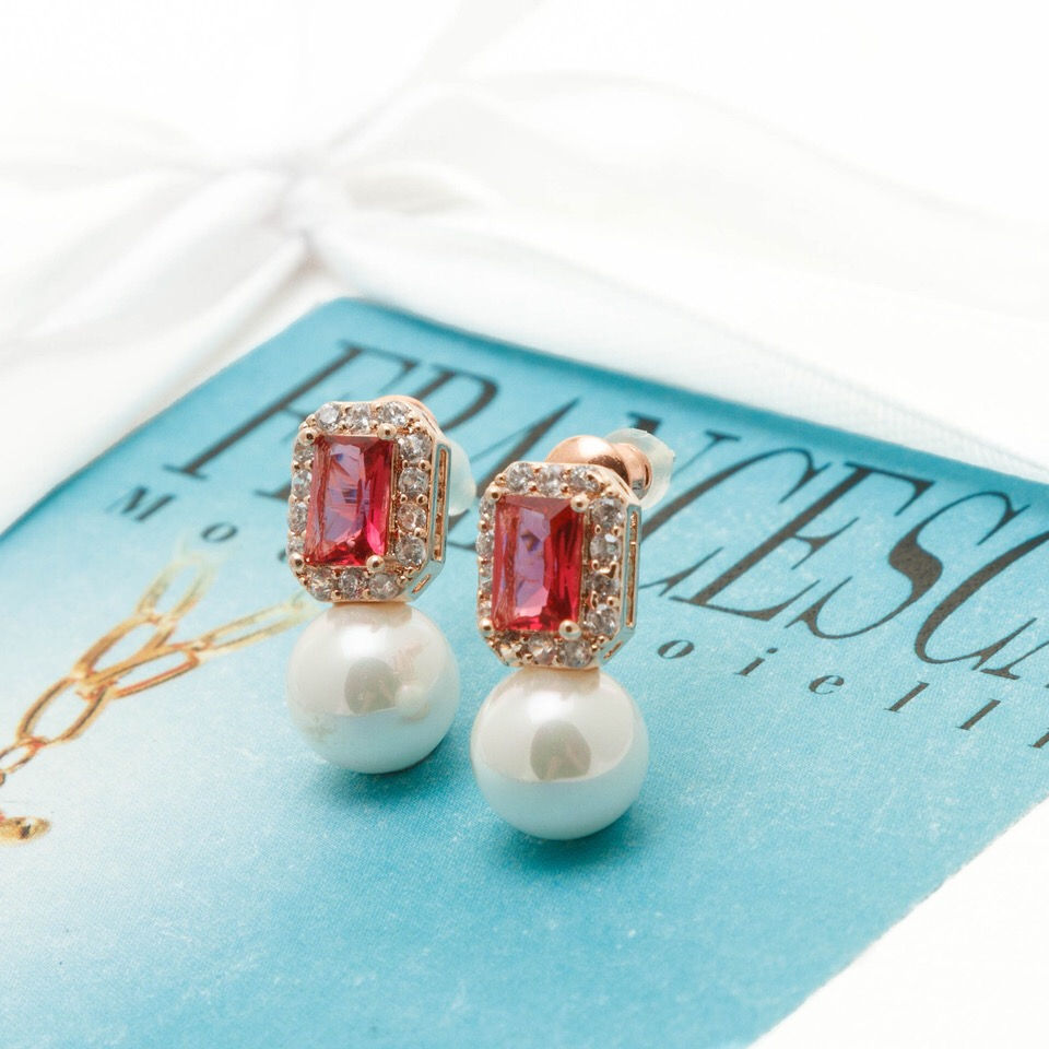 Fe8601 Αριστοκρατικές πέρλες σκουλαρίκια,με ροζ κρύσταλλο.