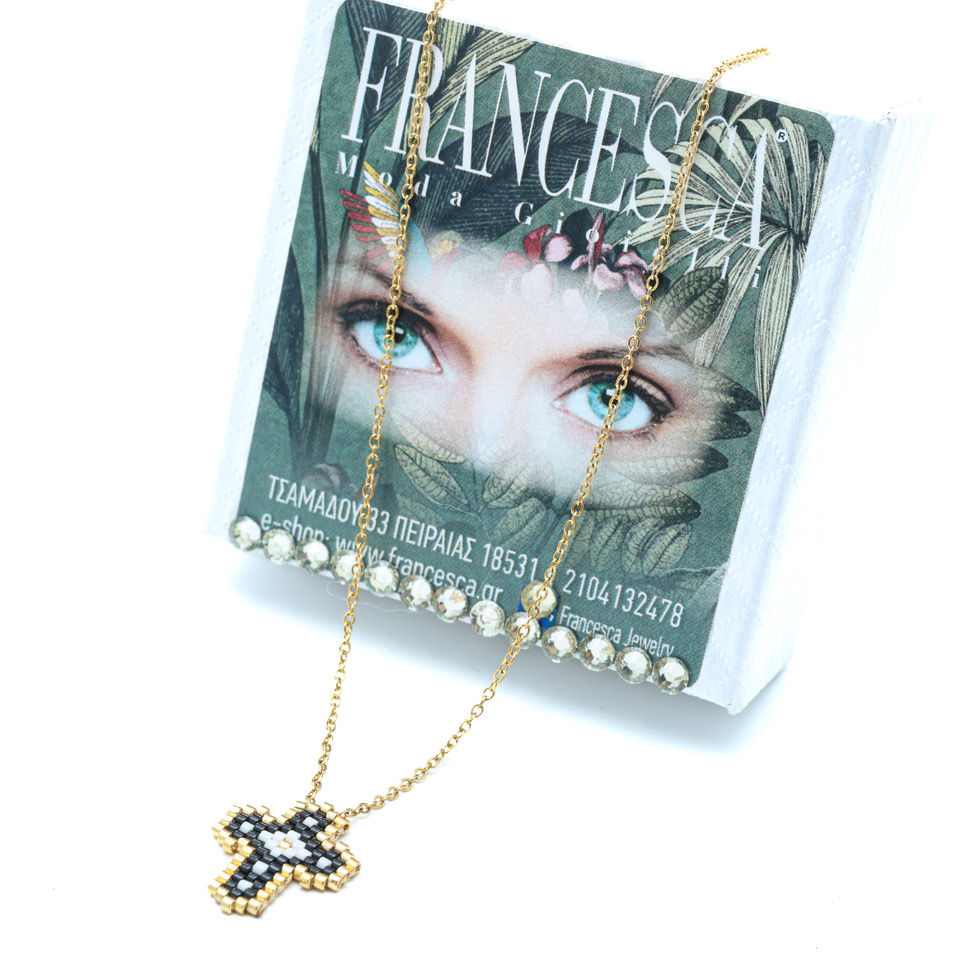 Fn7559 Ατσάλινο κολιέ Σταυρός με πολύχρωμα κρυσταλλάκια.