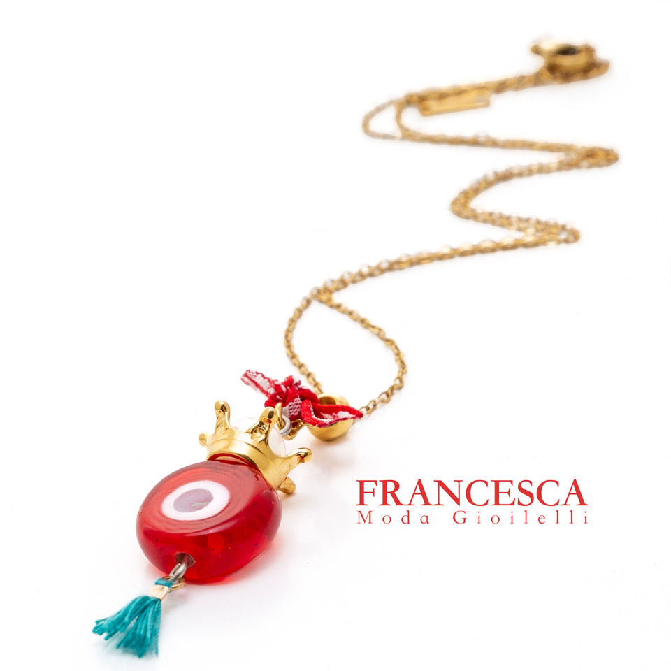 Fn8372 Χειροποίητο λεπτό κολιέ,μήκους 45 εκατ,με κόκκινη murano.
