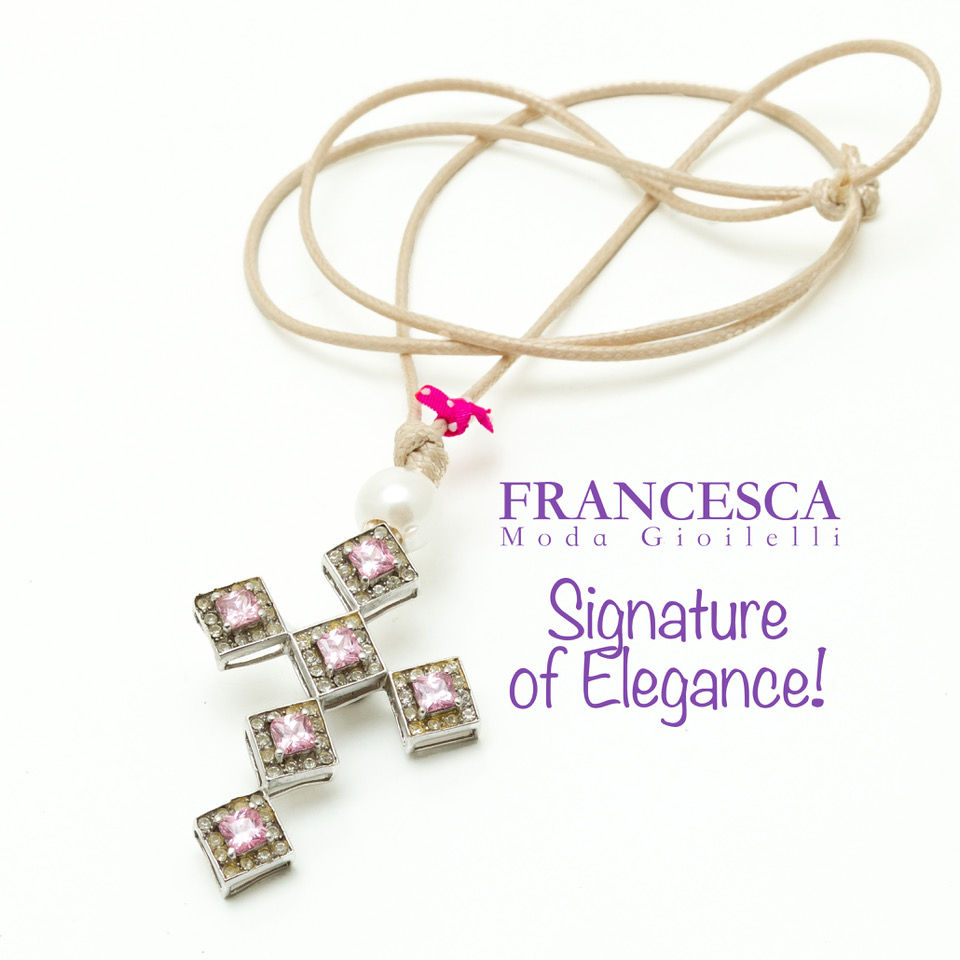 Fn7818 Ασήμι 925° Μακρύ κολιέ κορδόνι,με εντυπωσιακό Σταυρό ύψους 5 εκατ