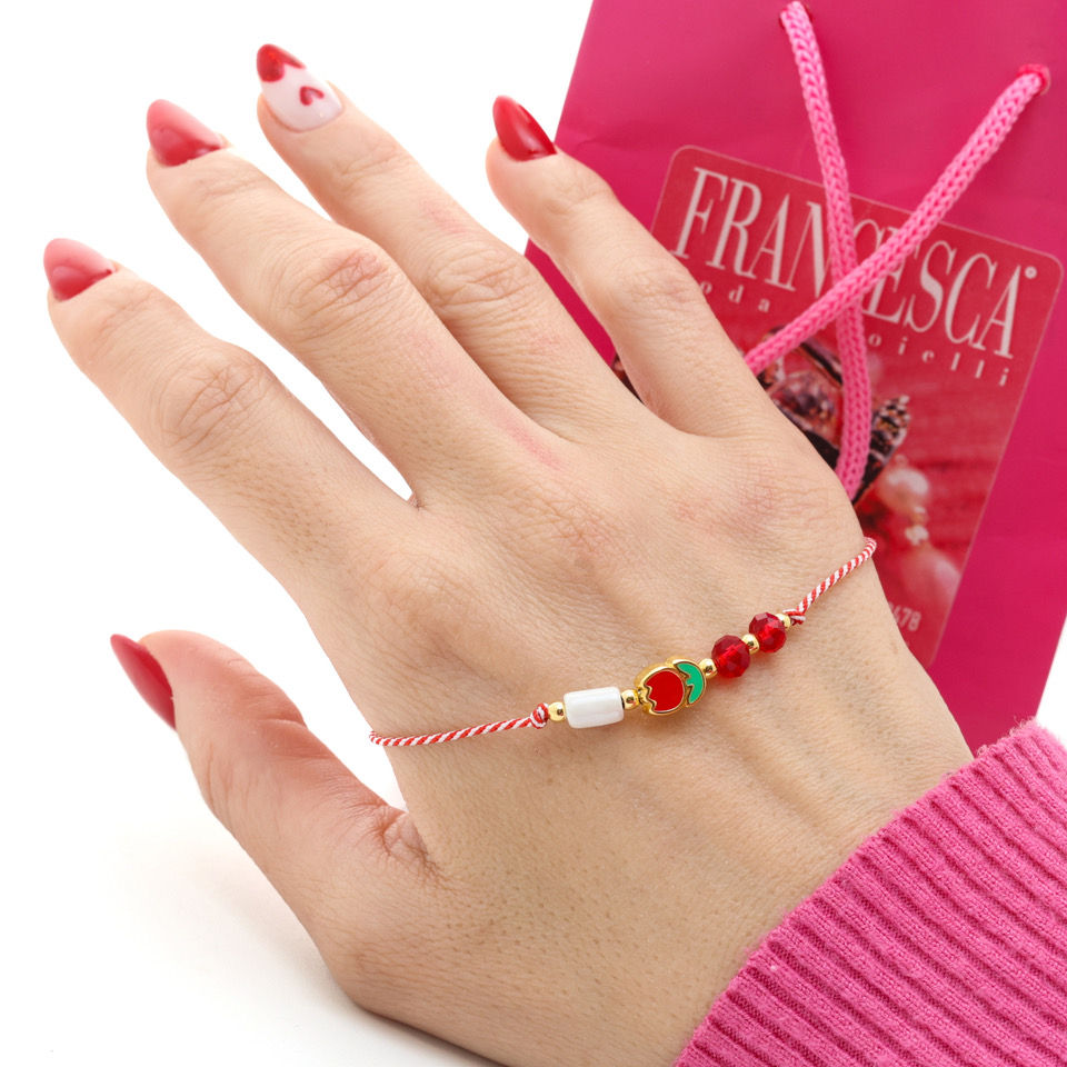 Fb7429 Χειροποίητο βραχιόλι Μάρτη,με διακριτικό στοιχείο.
